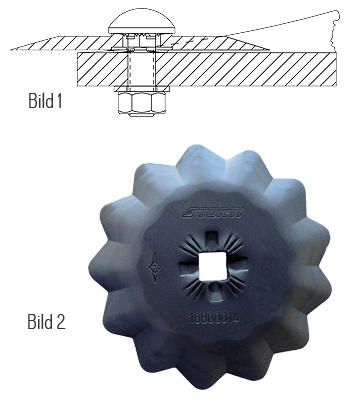 Frielo® Spike kann sowohl auf der Unter-, als auch auf der Oberseite und sogar auf beiden Seiten gleichzeitig angebracht werden. Dadurch ist eine Befestigung sowohl auf als auch unter der Mischschnecke möglich (siehe Bild 3).